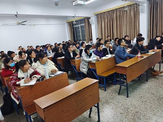 交流会由任艮丰与班主任老师主讲。任艮丰就新生最关心的考研与就业问题进行了宏观分析,并展示了近五年来我院考研与就业学生课程绩点与考研结果的数据分析结果,为新生今后的学习指明了方向。