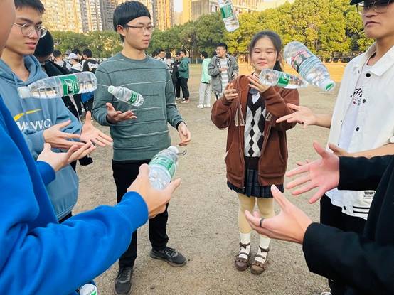 “踩气球”游戏由同学自由组队,两至三人一组,每个小组三个气球,剩下四个小组后进入决赛圈,剩下4个气球时,小组解体,再度缩小决赛圈,直至剩下最后一位同学即为获胜者。游戏中同学之间相互配合,既锻炼了身体,也增进了友谊。“传递水瓶”游戏是倒计时后同时将自己手上的水瓶抛给下一个同学,直到水瓶又回到自己手上为止,用时最短小组获胜,考验了小组成员之间的默契和协作能力。“狼人杀”、“谁是卧底”、真心话大冒险等,同学们认真思考,积极发言,加深了了解,也增进了友谊。最后,活动在歌曲《夜空中最亮的星》中圆满结束。