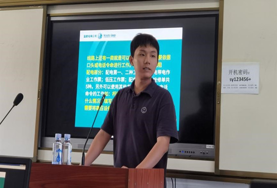 7月5日下午,为强化实践队员安全意识,提升队员对《电力安全工作规程》及其相关制度的理解,电气学院赴国网邵阳实践队于邵阳供电公司培训分中心605会议室召开安规培训会,带队老师范凯出席,全体实践队员参加。