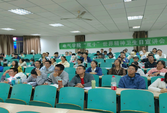 踏秋而至,从“心”开始,培育光的心灵,共建幸福校园。10月12日晚7点,电气学院在金盆岭校区6号教学楼312教室举办了“双十”精神卫生知识宣讲会。