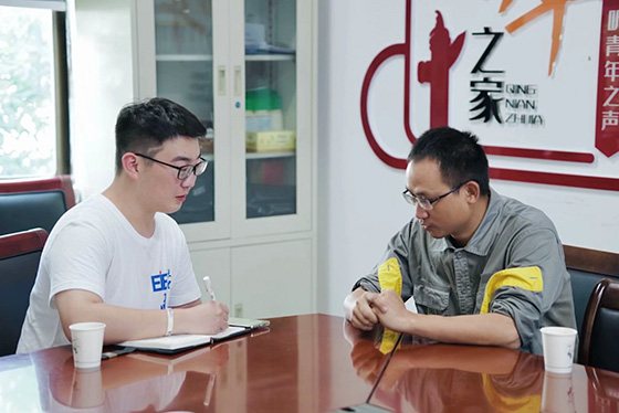随后,四名实践团成员对带电作业二班班长陈坚平进行了一次访谈。访谈中,陈坚平指出带电作业是电网检修中不可或缺的重要部分,并对输电队的队员们寄予了厚望。师生之间进行了高效的沟通,让实践队员们为日后的学习做好了准备。