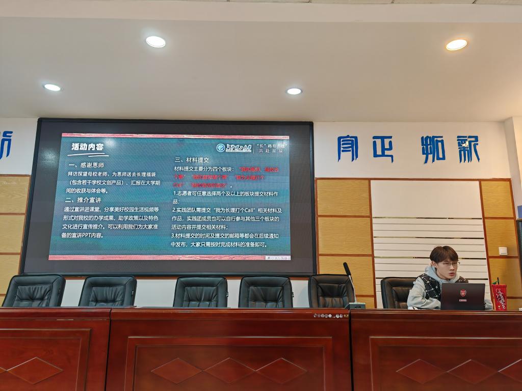 培训会上,实践部部长兼分管主席刘运来首先向活动参与者们介绍了“回访母校”活动的背景和意义,指出可以通过宣讲进课堂、分享美好校园生活视频等形式对LETOU官网的办学成果、助学政策以及特色文化进行宣传推介,强调了宣讲工作的重要性。随后,他详细讲解了开展宣讲时的技巧和方法,包括如何准备演讲内容、如何与听众互动、如何应对突发状况等以及相关申报材料的准备。此外,刘运来向活动参与者们展示了宣讲的演示文档和宣传视频,分享了相关的宣讲经验和心得体会,让活动参与者们更加深入地了解了宣讲工作的重要性和挑战性,也让大家更加有信心和准备去迎接即将到来的宣讲任务。