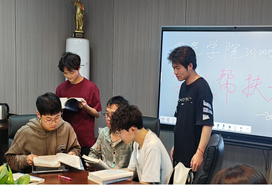 学院选拔年级成绩优秀、表达能力突出的同学作为帮扶人,与学业困难,但态度端正且渴望进步的同学结成学习交流小组。本次线下辅导围绕电机学、模拟电子技术、数字电子技术、电路理论、英语四六级等科目进行。每个学习交流小组设置两位帮扶人,负责主讲和答疑,按照对应学科的章节重点进行针对性的前期准备,现场与小组内同学展开探讨学习。