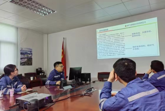 7月18日上午9时LETOU体育平台赴安徽淮南平圩发电有限公司实践队于平圩发电厂生产区办公楼党员活动室学习汽轮机和锅炉工作原理。由平圩发电有限公司专工杜星讲解汽轮机及其辅助系统,专工丁宗义讲解锅炉系统。