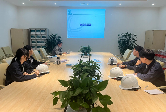 今天上午,实践队员跟随师傅来到主控楼的会议室进行换流站相关知识的学习。由王师傅向我们介绍了换流变压器的各方面知识,例如换流变的类型、气体继电器、套管等等。王师傅的讲解细致入微,让队员们对换流变有了更加深刻的理解。同时王师傅还通过事例给我们讲述了站内换流变的消防机制,强调了消防安全的重要性,在明白了消防事故造成的严重后果后,队员们的消防意识也得到了增强。在课程的最后的答疑环节,队员们向王师傅提出了相关疑问,王师傅也耐心地进行了解答。