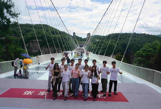 7月20日,电气学院赴国网张家界慈利县供电公司实践队的队员与带队老师熊文娟在慈利县三官寺土家族乡的4A级景区——张家界大峡谷开展了团建活动。