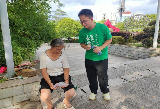 下午16:30实践队员抵达娄星广场,在进行简单任务分配后实践队员分别对公园中娱乐休闲的老人、带孩子出来散步的家长、在公园进行拍照的学生等进行了传单的派发与心理健康相关知识的宣讲。