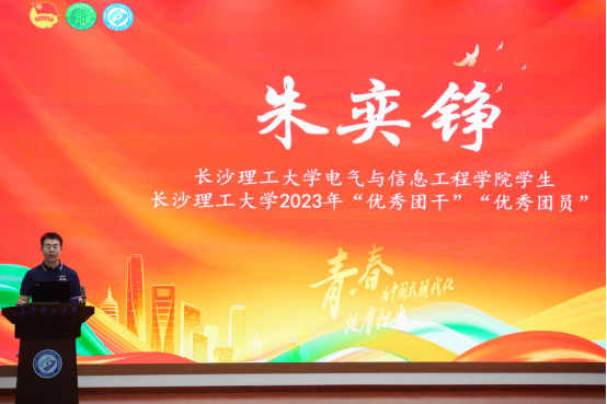 9月24日,中国青年五四奖章百场宣讲活动(湖南)在云塘校区图书馆报告厅召开,我院电气2202班学生、分团委学生会团委副书记朱奕铮作为唯一学生代表上台发言。