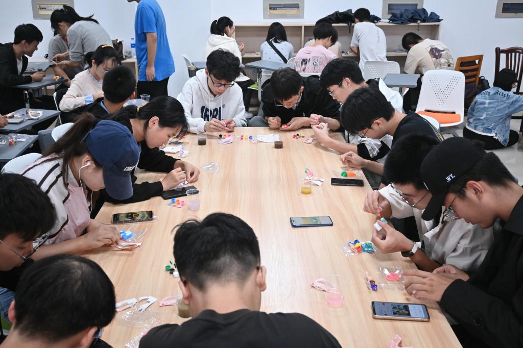 “我喜欢猫爪形状的石膏娃娃!”“我想要玉桂狗形状的!”“我想涂哆啦A梦的石膏娃娃!”……10月15日下午,随着学生们兴奋的呼喊声,电气学院在工一B312团体辅导室拉开了“疗愈”石膏娃娃彩绘活动的序幕,一场充满创意与疗愈的涂鸦时光就此开启。