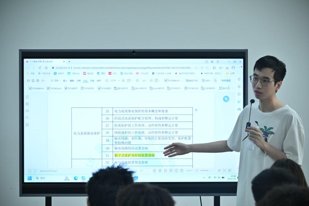 5月6日,电气学院在工科一号楼B312教室举办国家电网、南方电网备考经验分享会。活动邀请电卓2101班孟令敬、周杨明睿及电气2105班孔令知三位学生代表担任主讲,学院就业指导中心主任欧彩玲、2022级辅导员楚艳鸽、吴佳骐出席活动,七十余名2022级学生参与学习。