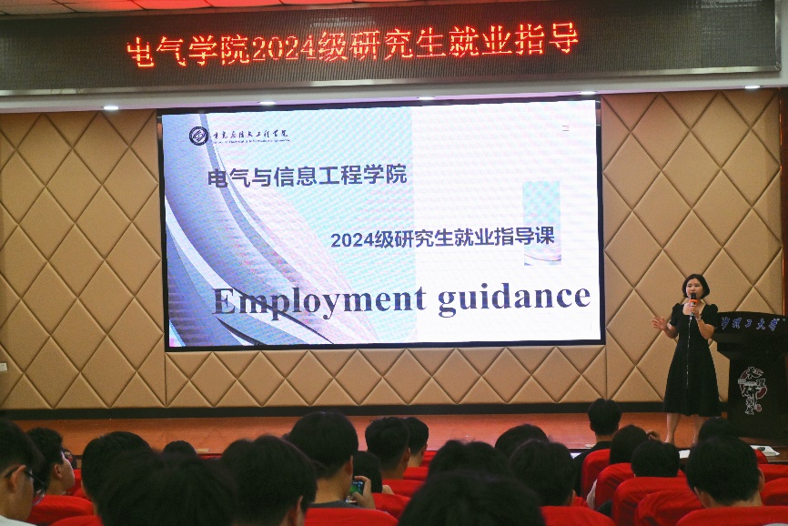 2025年6月5日晚,电气与信息工程学院在文科楼A200举办2024级研究生就业指导课。研究生辅导员楚艳鸽、樊喜雁,2024届优秀毕业生代表刘国胜、徐丽及全体2024级研究生参会,助力学子明晰就业方向、规划职业路径。