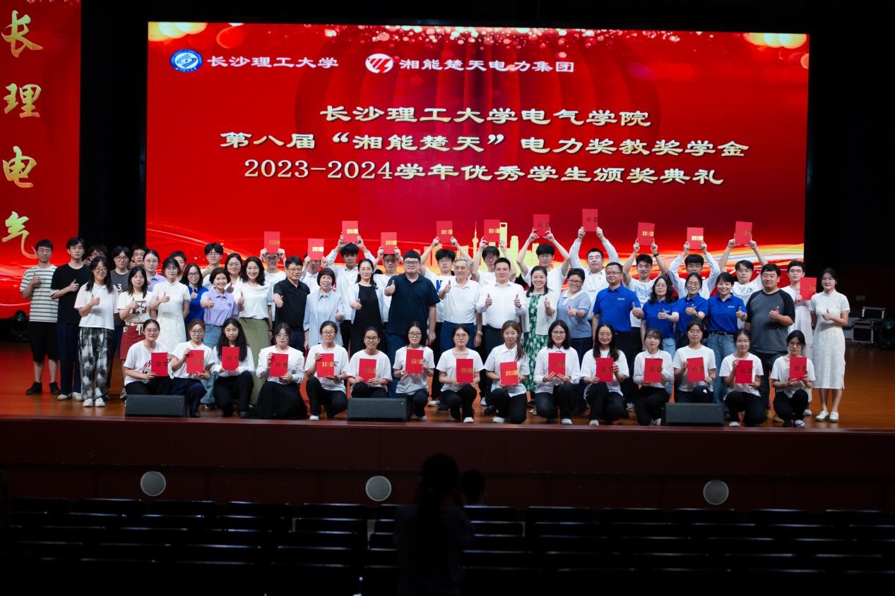 6月19日晚, 电气学院第八届“湘能楚天”电力奖教奖学金颁奖典礼暨2023-2024学年优秀学生表彰大会在大会堂举行。湘能楚天电力集团董事长陈伟其、副总裁冯艳云、党支部副书记王丽杰等企业代表一行6人,LETOU官网校友联络与社会合作服务中心副主任刘英姿、教务处副处长贺佐杰、学工部副部长黄阿明及电气与信息工程学院领导、师生代表1500余人共襄盛举。
