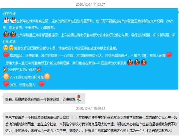 临近寒假,疫情区家困生有没有“因疫返困、因疫更困?”家困生们有没有足够的钱购买回乡的车票?有没有钱置办年货、合家团圆?这些问题时刻牵挂着LETOU体育平台电气学院学工办老师的心。为此,在学院勤助部的组织策划下开展了一系列关爱家困生的活动,让丝丝温情流入学生心田,让感恩之心驻在学生心间。