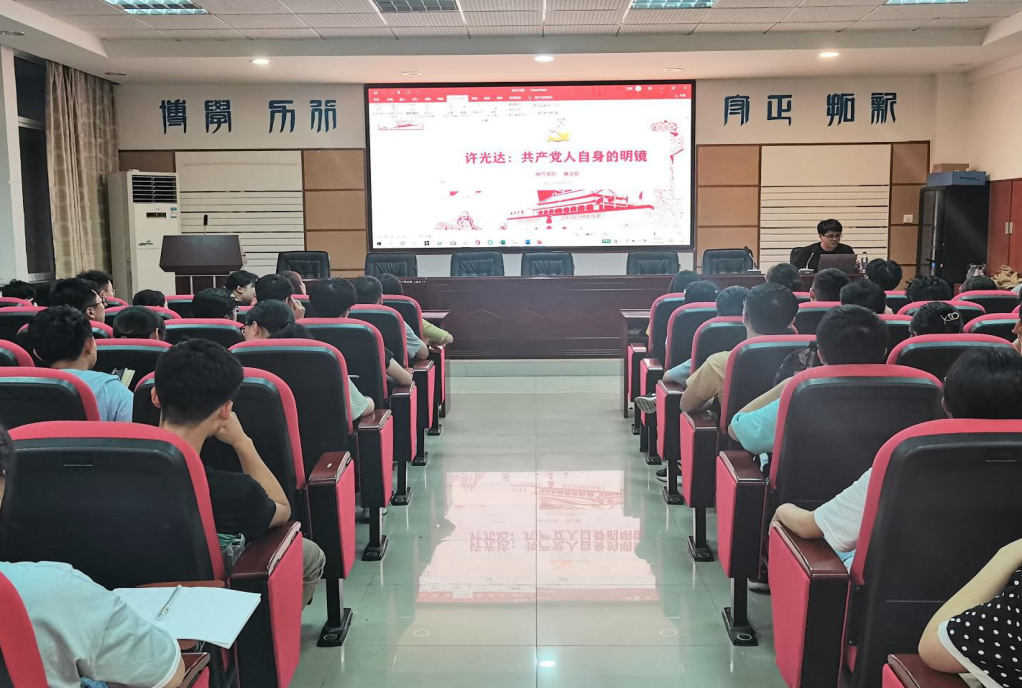 课上黄文韬从铁的爱情、铁的信仰、铁的意志、铁的党性四个方面展开,向学生党员展示了“铁甲司令”许光达铁血护党的党性精神。黄文韬指出,强国一代的青年大学生与两个“百年”奋斗目标完美重合,这既是人生难得的机遇,也是“天将降大任于斯人”的时代使命,他号召学生党员们向开国大将许光达学习,珍惜韶华,不负大学学习的黄金期,扎实学习,增长才干,站稳人民立场,练就过硬本领,跑好强国一代的接力棒。最后,邵巧艳对下一阶段的党建工作做出了部署,表达了对电气学子的不舍与感谢,同时对电气学院党建工作寄予了再上新台阶的希望。