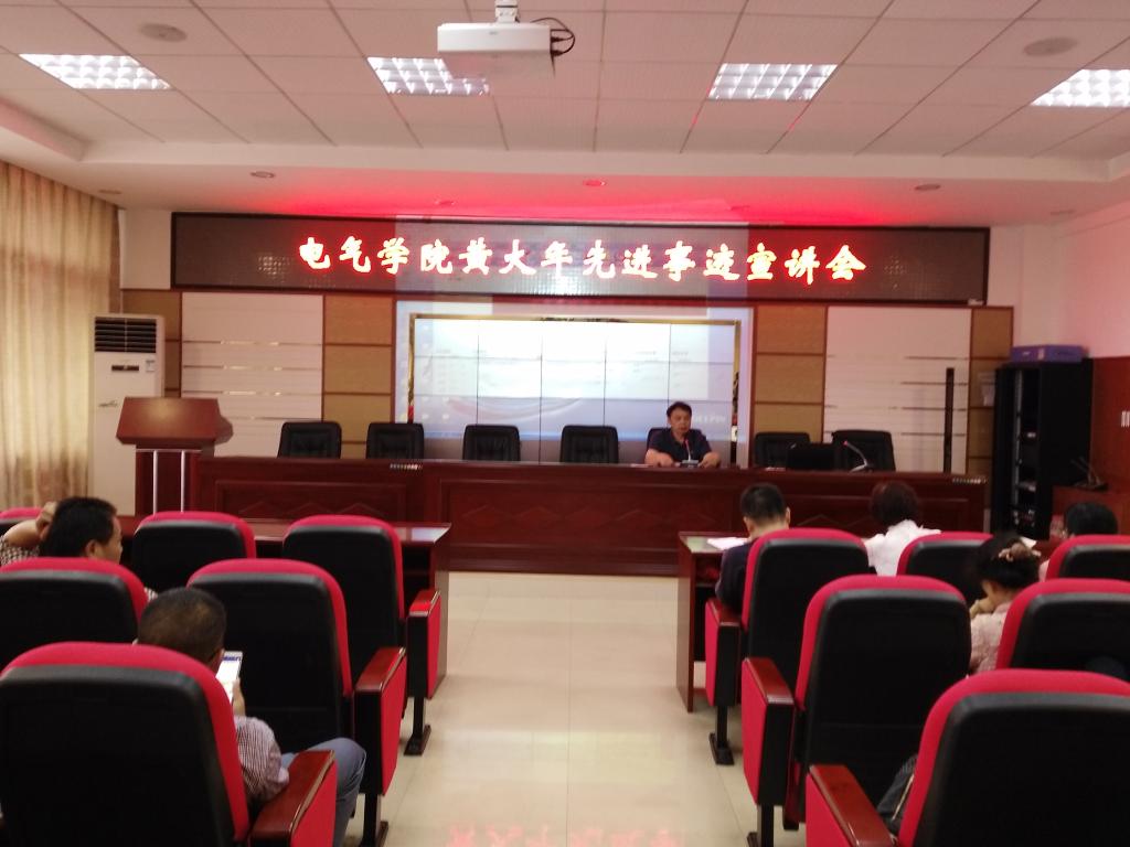 9月28日下午,电气学院在工1B503组织全体教职员工专题学习黄大年同志先进事迹。学习活动由学院党委书记符慧林主持。