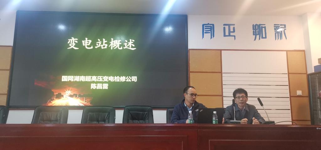 陈昌雷向师生们系统介绍大型智慧变电站在电网中的作用,介绍变电站内一次设备、保护及自动装置、辅助设备配置情况,讲述设备作用及相互联系,简述维护重点。