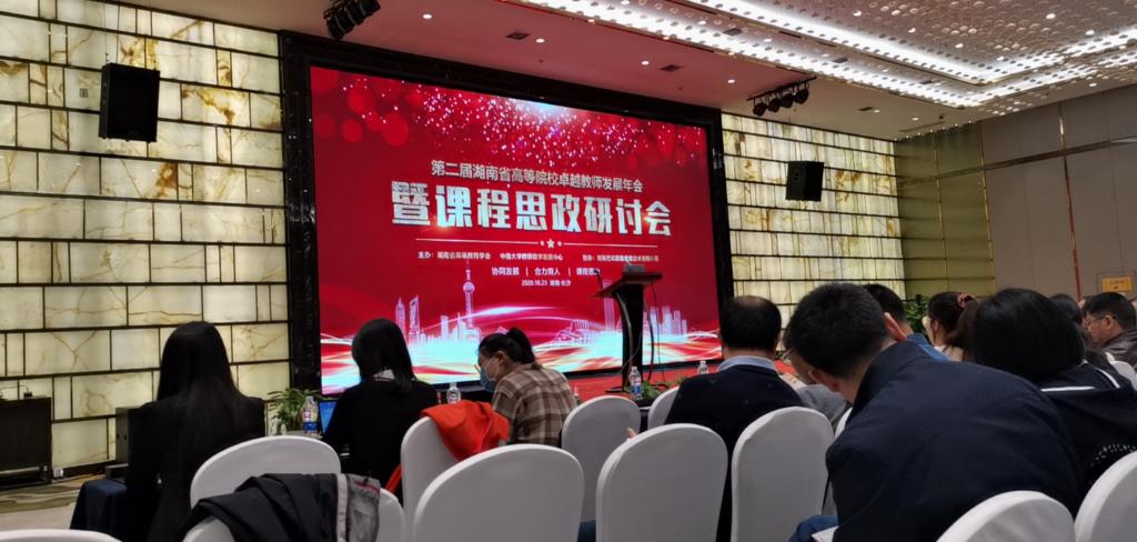 2020年10月23日,第二届湖南省高等院校卓越教师发展年会暨课程思政研讨会在长沙成功举办。此次活动由湖南省高等教育学会、中南大学教师教学发展中心主办,湖南世纪超星信息技术有限公司协办。省内50所高校约200多位教务处领导、学院教学负责人和教师参加会议。我院唐欣副院长与其他3位老师一起参加了研讨会。