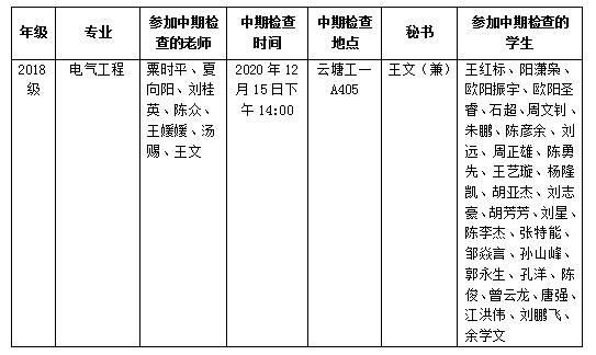 2020-2021学年第一学期电气与信息工程学院硕士研究生学位论文中期检查安排表 (八)