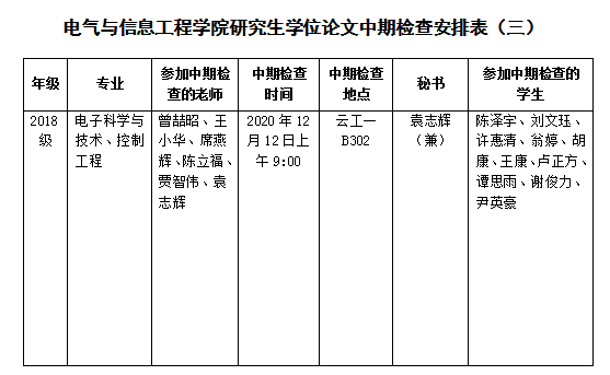 2020-2021学年第一学期电气与信息工程学院硕士研究生学位论文中期检查安排表(三)