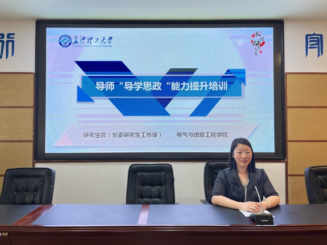 59日下午,电气学院召开2023年导师导学思政能力提升培训会,党委书记伍接朝、院长陆佳政及全体导师参加会议,培训会由党委副书记陶双主讲。