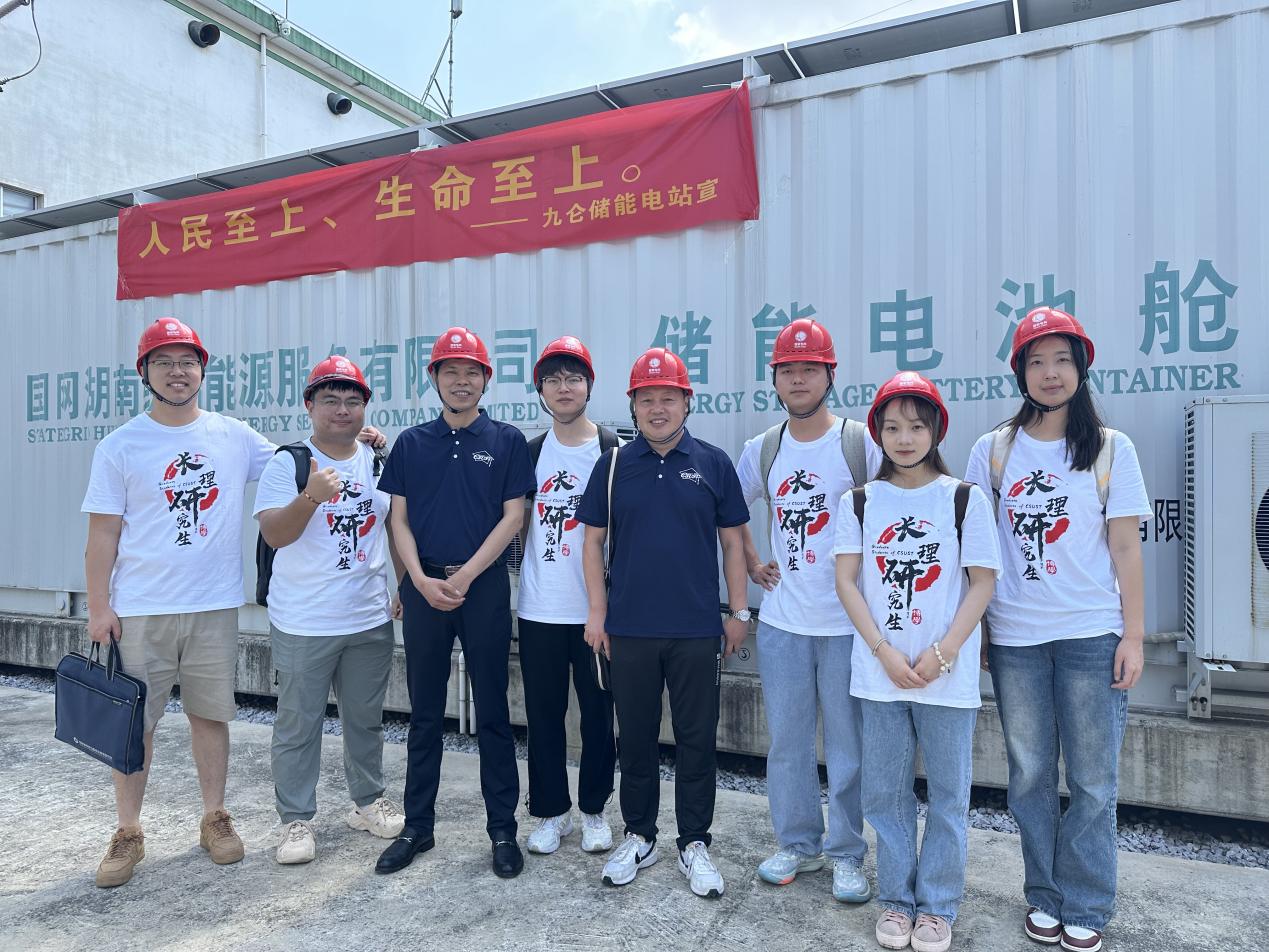 实践人员首先前往娄底九伦储能电站进行参观调研,在储能电站工作人员的带领下参观了储能电站的电池储能区、能量管理系统和变流室,工作人员详细解释了储能电站内电池的工作原理、维护流程以及展示了如何通过现有的方法优化充放电策略,提高储能效率;实践团成员积极和工作人员进行交流,了解了当今在储能电池使用上还存在的问题,为实践团成员提供了创新思路。