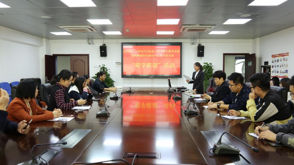11月4日,学院行政党支部带领本科生电气四支部前往国网湖南电力公司“电网输变电设备防灾减灾”中心(国家重点实验室,以下简称“防灾减灾”中心),“党建引领、携手创新发展”为主题,“防灾减灾”中心机关党支部开展师生互动校企融合支部“双联双学”和“联学联创”主题党日活动