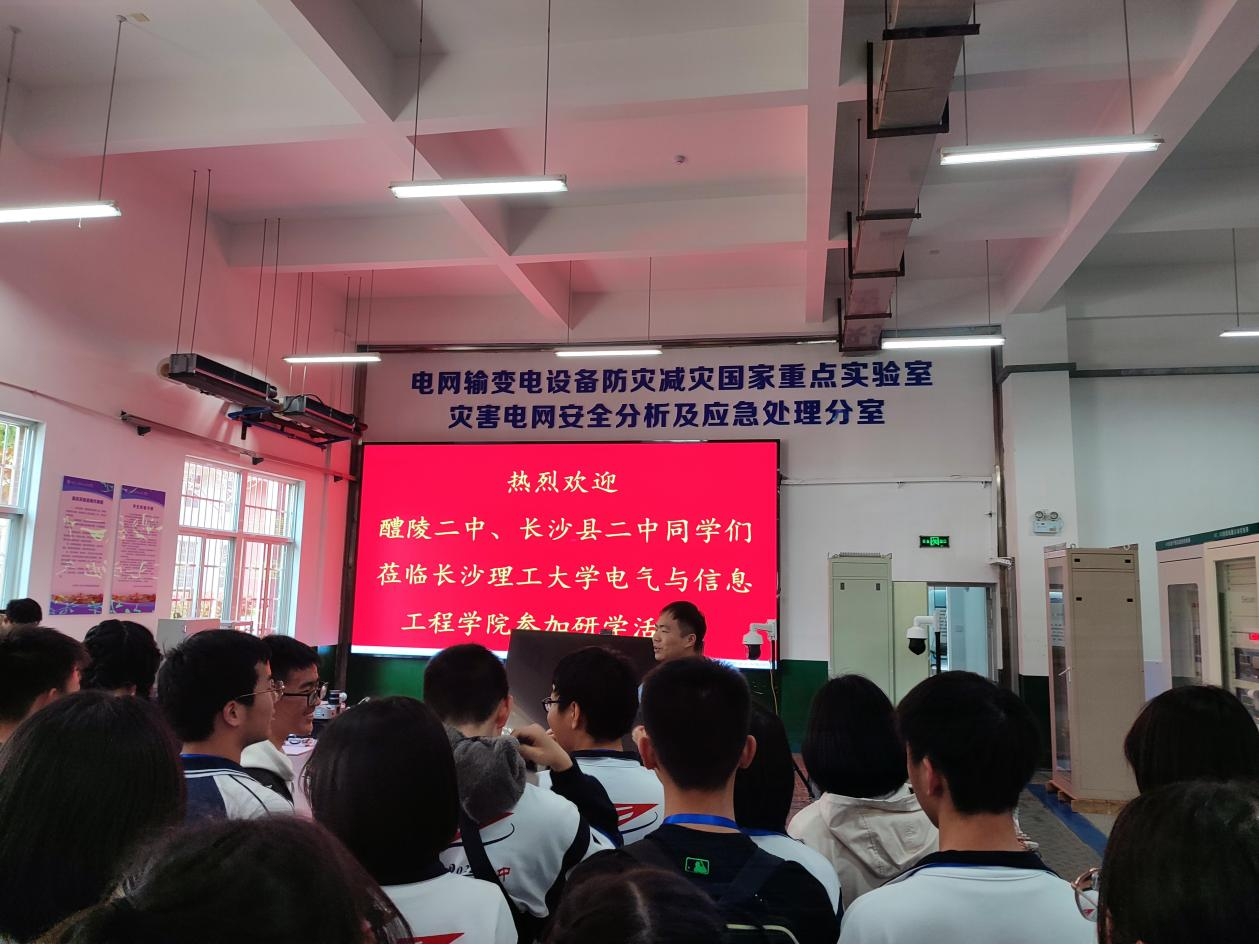 3月31日下午,醴陵二中、长沙县二中的160名学生来到新能源大楼2栋1楼的电网防灾减灾国家重点实验室开展研学活动,参与课程体验。学院智能电网与电子工程系主任喻锟等老师为他们进行了讲解。