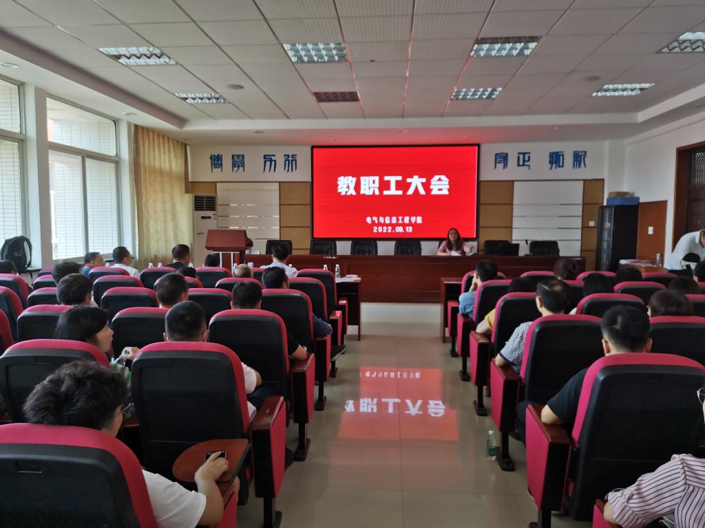 9月13日下午,学院在工一B503召开全院教职工大会。会议由常务副院长杨洪明主持,学院党委书记伍接朝传达学校重要会议精神,部署秋季学期工作。