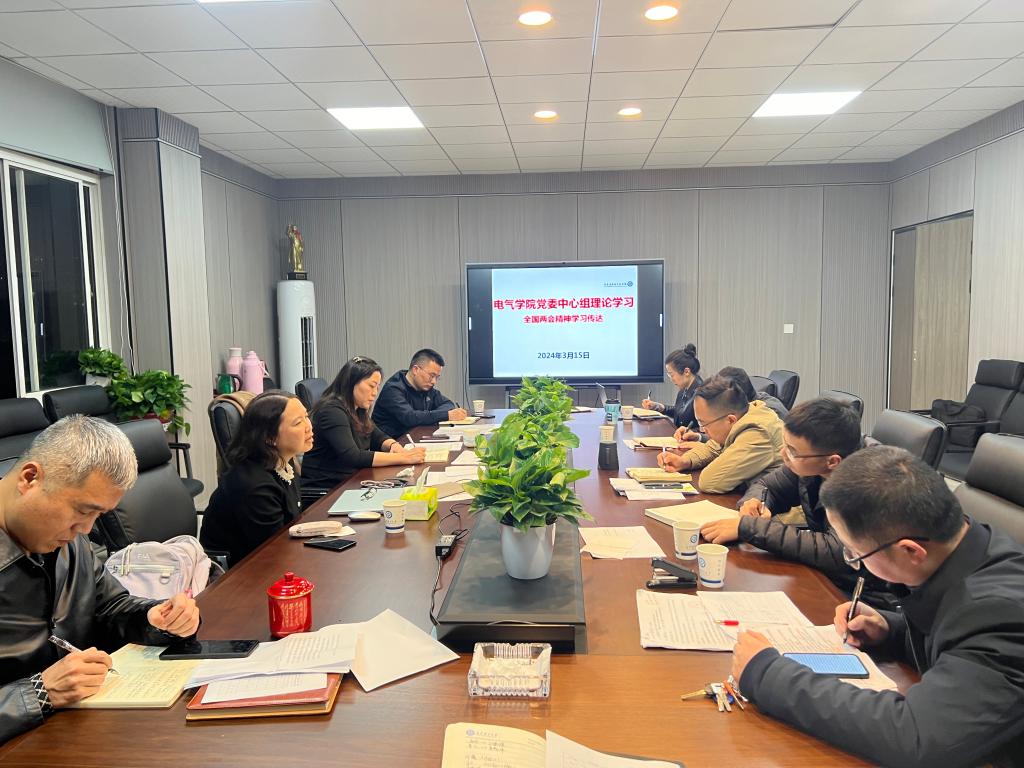 3月15日,电气学院党委理论学习中心组召开会议,及时传达学习习近平总书记在全国两会期间重要讲话精神和全国两会精神,深入学习习近平总书记关于因地制宜发展新质生产力、谋划进一步全面深化改革重大举措、统筹推进科技创新和产业创新、以高水平保护支撑高质量发展的重要论述,并结合学院发展实际研讨交流贯彻落实工作。党委书记丁丹主持会议。