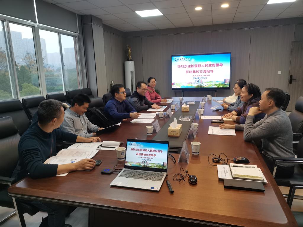 丁丹介绍了学校、学院基本情况及近年来学院在科学研究、人才培养等方面取得的主要成效。夏开业介绍了松溪县在食品加工、新型轻纺、林产工业、机械制造、文体旅游等领域的产业发展概况,并指出松溪县正着力推动产业升级,急盼科研人员深入松溪县地方企业,助力企业解决生产实际问题。范必双结合个人科研经历深刻分析了校、企、政三方联动与跨学科交流合作的必要性和紧迫性。双方就如何推动产业升级充分交流了想法和意见。