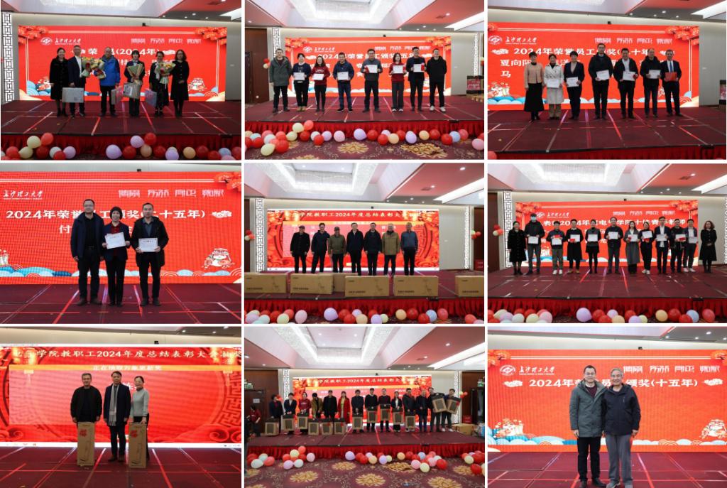 团拜会上,学院为2024年退休教师举办了荣退仪式,为在院工作满5年、10年、15年、20年、25年、30年的教职工颁发了荣誉员工奖,各系、机关行政及离退休教师献上了曲艺、合唱、舞蹈、演奏等文艺节目,展现了学院教职工众志成城、锐意进取、和谐融洽的精神风貎,为团拜会增添了祥和、喜庆的氛围。