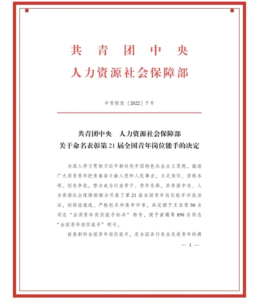 宛璐,我院电气工程及其自动化专业12届毕业生,现任国网黑龙江省电力有限公司大兴安岭供电公司党建部副主任。2022年被共青团中央、人力资源社会保障部授予“全国青年岗位能手”荣誉称号。
