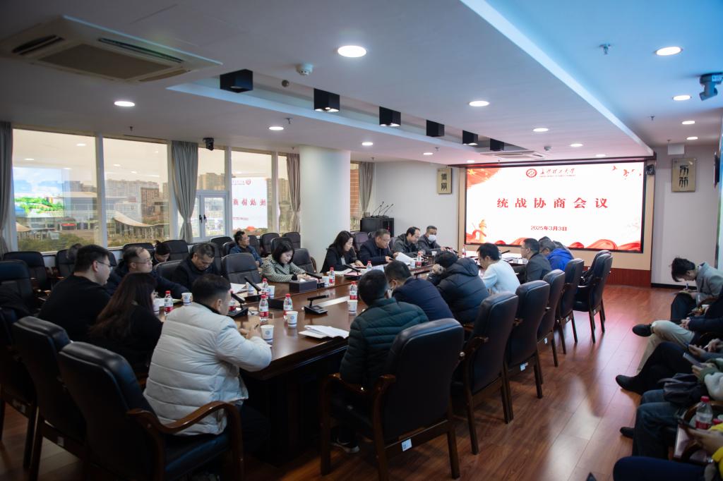各民主党派和统战团体负责人紧密围绕学校2025年重点工作,立足实际,从思想引领、立足岗位作贡献、参政议政与建言献策等多方面情况进行交流,并就组织建设、人员发展培养、学科交叉融合等方面汇报了近期工作进展和本学期工作计划。