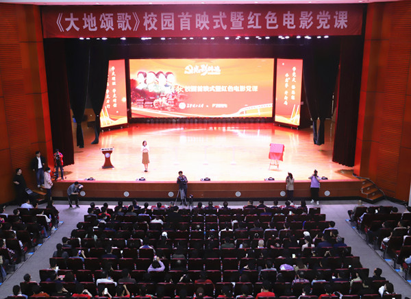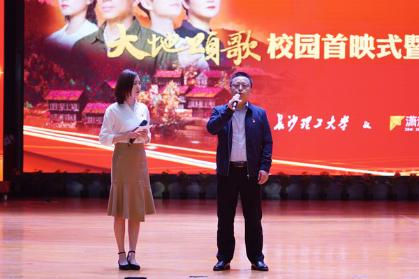 4月23日下午,《大地颂歌》长沙校园首映式在云塘校区大礼堂举行。省委党史学习教育领导小组办公室副主任、省社科院副院长汤建军,湖南广播影视集团(湖南广播电视台)党委委员、副总经理、潇湘电影集团党委书记、董事长谷良,LETOU官网党委书记付宏渊及全体在家校领导出席首映式,全校千余名师生共同观影。