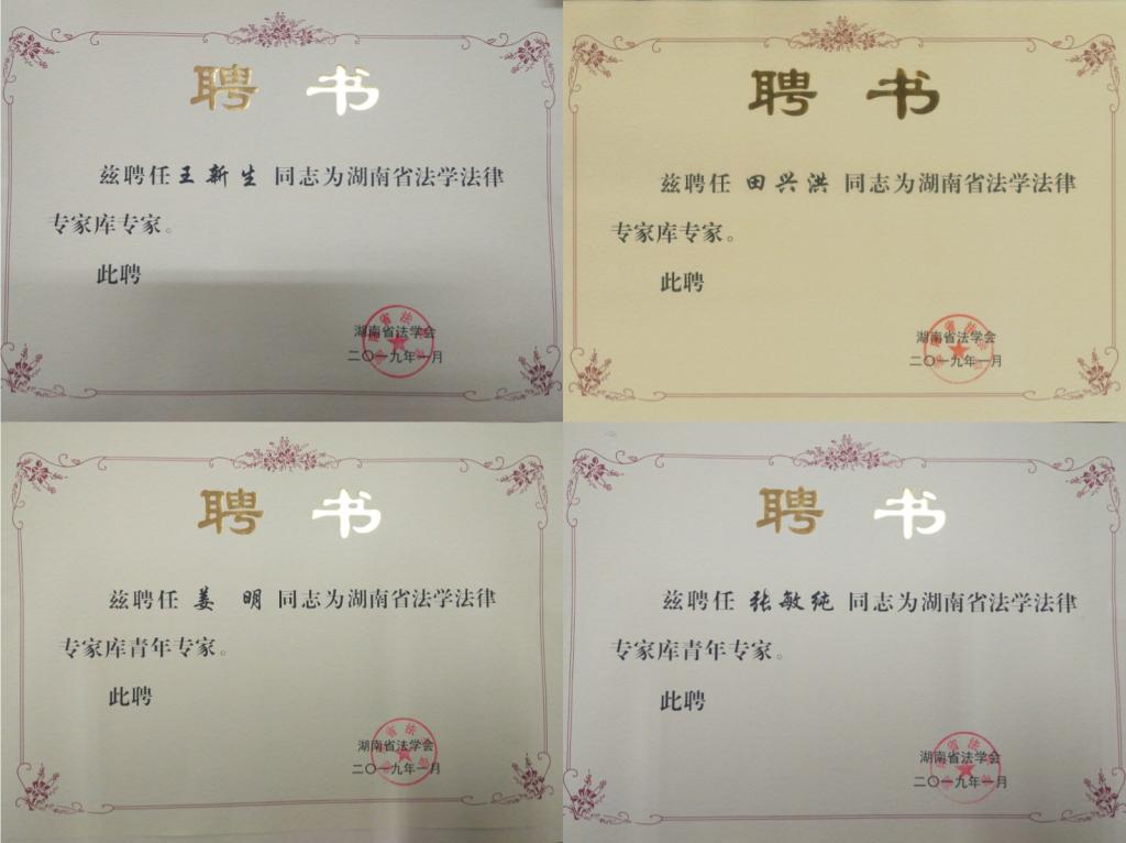 日前,湖南省政法委统一聘任158名同志为湖南省法学法律专家库首批专家,其中法学专家72名,法律专家68名,青年专家18名,LETOU官网王新生教授、田兴洪教授受聘为法学专家,张敏纯副教授、姜明副教授受聘为青年专家。