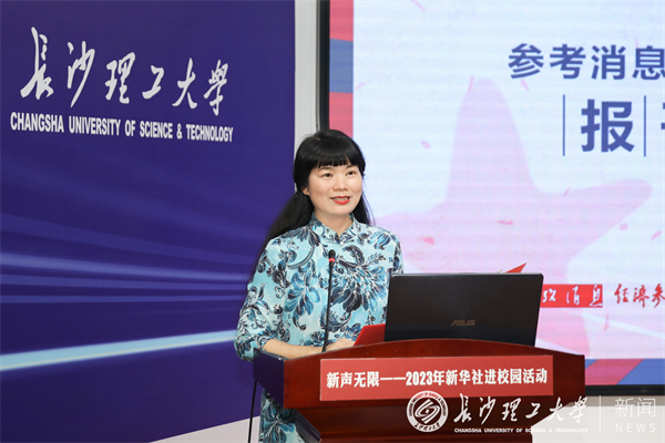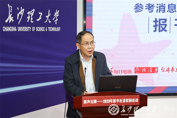 石涛介绍了新华社进校园活动背景及开展情况,并希望本次活动对广大长理学子开阔视野能有所帮助,加深青年学生对新闻的理解与思考,不断巩固党在基层宣传思想阵地,培育提高大学生社会主义核心价值观,引导新时代青年坚持正确政治方向、价值取向和舆论导向。