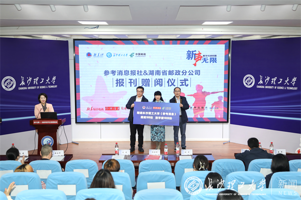 活动现场,新华社湖南分社、参考消息报社、湖南省邮政分公司赠阅《参考消息》100份、数字报1000份。