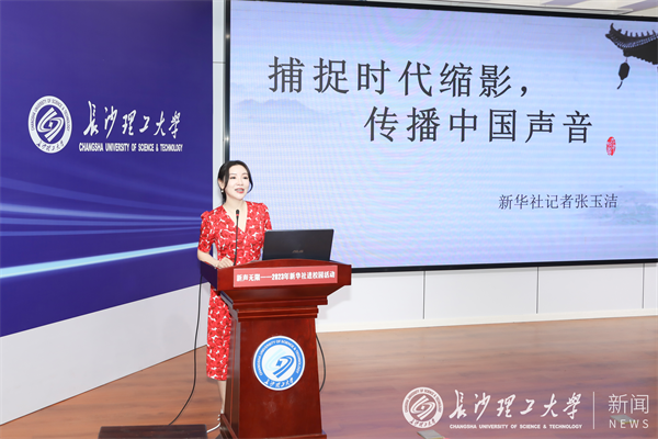 在“新锐青年说”活动环节中,新华社湖南分社经济采访部主任周楠以《我的新闻路:以笔为犁,耕耘梦想》为题,分享十三年从业生涯中的难忘片段,用喜悦、哭泣、温暖、危险、振奋等关键词为切入点,还原报道现场,将幕后故事娓娓道来,并寄望在座青年能绽放理想之花,扬帆远行,抵达梦的彼岸。新华社湖南分社对外部主任张玉洁以《捕捉时代缩影,传播中国声音》为题,结合自身新闻调查经历,分享从业生涯所见所闻,生动展现了新闻报道所传递出的巨大社会效能与现实力量。她用“追光的人终会光芒万丈”寄语在场学子能不畏风雨勇敢追光,在新时代之下能有新作为、展现新形象、做出新贡献。在现场交流提问互动环节,两位记者就如何掌握新闻专业知识,提升新闻捕捉能力、维护新闻理论、坚守新闻职业理想等为同学们作出详细解答。