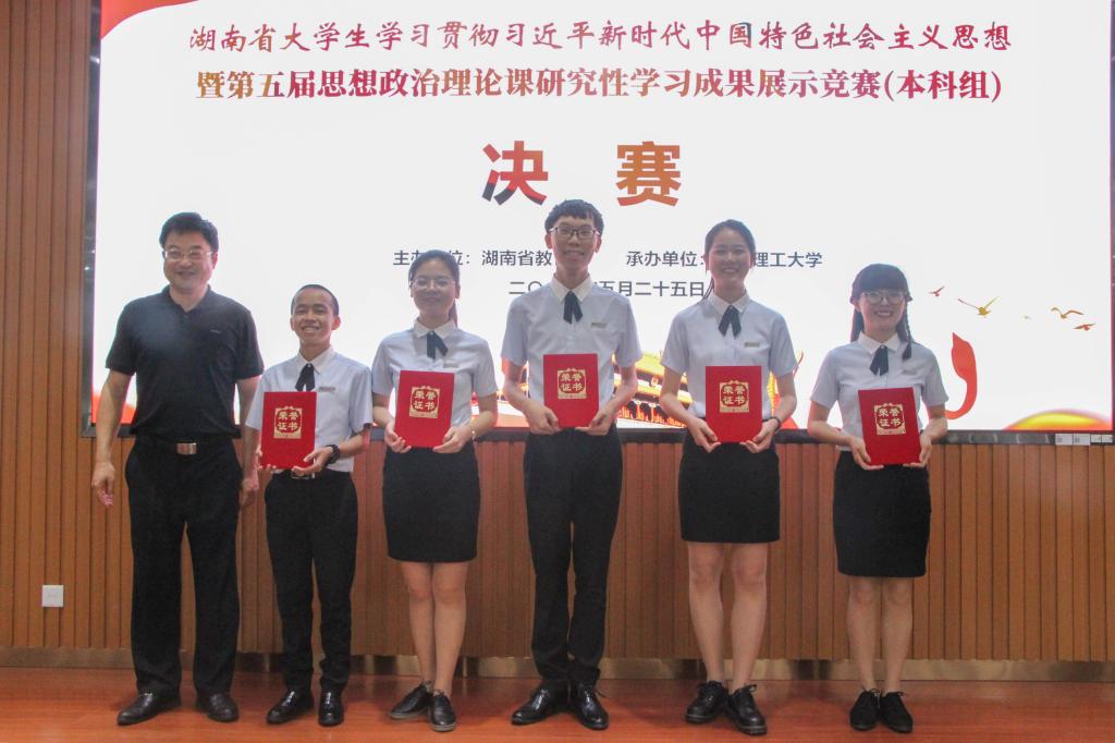 5月25日,湖南省大学生学习贯彻习近平新时代中国特色社会主义思想暨第五届大学生思想政治理论课研究性学习成果展示竞赛本科组决赛在LETOU官网顺利举行。由马克思主义学院郭华老师指导,来自电气工程学院的五名学生谭艳、王沛缘、陈烊文、高林生、罗恒组成学习小组代表学校参加决赛,其作品《新时代理工科大学生工匠精神的培育与践行研究》喜获一等奖。