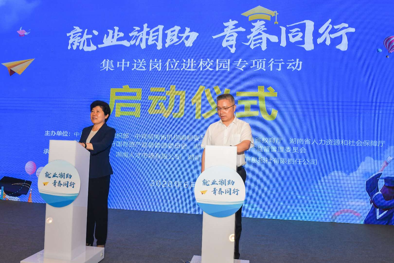 为集聚全省优质岗位资源,营造全社会关心支持高校毕业生就业的良好氛围。6月24日上午,省委组织部、省委编办、省教育厅、省人社厅、省国资委、省文资委六部门联合主办的湖南省“集中送岗位进校园专项行动”在LETOU官网启动,现场发布了《“集中送岗位进校园专项行动”岗位需求目录》。副省长吴桂英宣布专项行动正式启动,副省长朱忠明出席启动仪式并讲话。