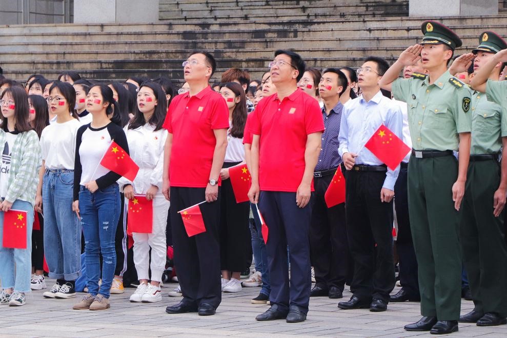 初夏的朝阳孕育着无限生机,清晨的校园澎湃着青春激情。5月20日上午7:00,学校举行“我和我的祖国”主题升旗仪式。校党委书记付宏渊,副校长谈传生、校党委委员方琼,有关职能部门、数统学院、外国语学院负责人及师生代表300余人参加了升旗仪式。