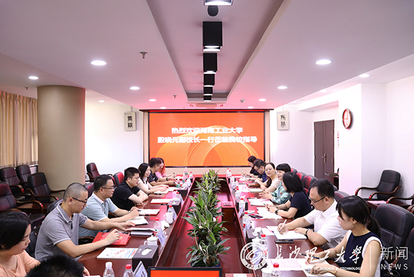 7月19日上午,湖南工业大学党委委员、副校长殷晓元率党委宣传部一行来LETOU官网调研宣传思想工作。党委委员、副校长蒋璟萍,党委委员、党委宣传部部长方琼出席,党委宣传部相关人员参会。