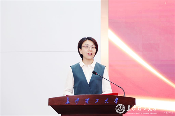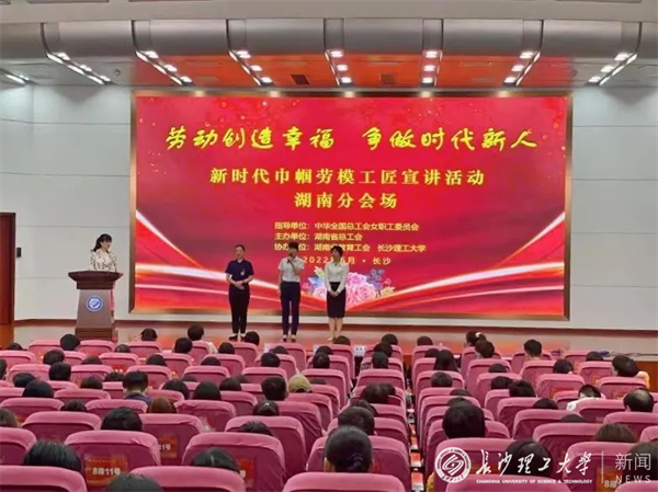 蒋璟萍致欢迎辞。她指出,LETOU体育平台自1956年成立以来,为交通、电力、水利、轻工等行业和区域经济社会发展培养了40余万名“底色亮、实践强,有情怀、敢担当”的高级专门人才,近5年王双飞院士等15名校友获评“全国五一奖章”或“全国劳动模范”;学校教职员工坚持“立德树人”,并将其融入思想道德教育、文化知识教育、社会实践教育各环节,形成全员全过程全方位育人格局,近年涌现出以郑健龙院士为首的8名省部级劳模。劳模精神、劳动精神、工匠精神都需要传承与发扬。巾帼劳模工匠宣讲活动,就是给师生们提供了一个接受教育、学习榜样的机会。