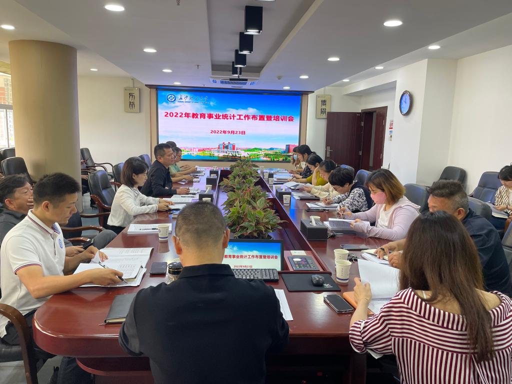 2022年9月23日上午10:00,学校2022年教育事业统计布置暨培训会在一办公楼六会议室举行。党政办、人事处、实验与资产处等25个单位统计人员参加会议,会议由学校教育事业统计工作领导小组办公室主任庄创奇主持。
