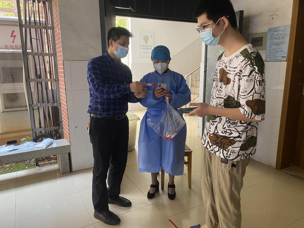 刘燕妮同志在学生宿舍组织学生进行核酸检测