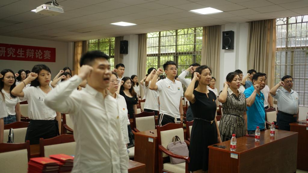 为全面强化毕业生党员的先锋意识,激励毕业生党员坚定理想信念,勇于担当、练就本领、投身伟业,有序完成毕业生党员离校管理工作,经管学院于6月16日上午在金盆岭校区7教110举行2022届研究生毕业生党员专题教育大会。经管学院关工委特邀组织员陈均杰、经管学院党委书记丁丹、党委副书记唐青、学院副院长王治、研究生党建辅导员肖翠以及研究生党建工作组和毕业生党员代表参与了本次大会。会议由研究生党建辅导员肖翠主持。