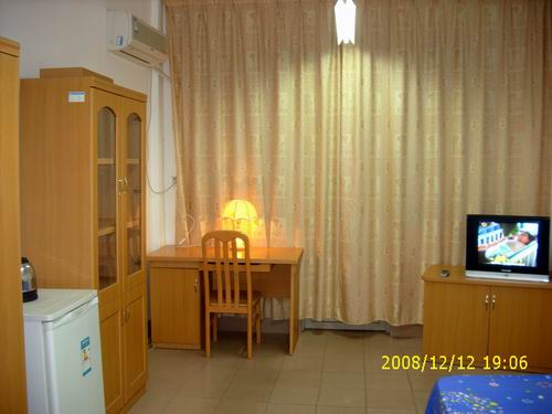 유학생아파트.방두개거실한개(40원/하루),방한개거실한개(20원/하루)두종류가있음.주방,화장실포함.인터넷전용선,전화,텔레비전,에어컨,세탁기포함.학생식당사용료는약300-600원/매월.