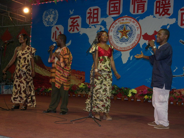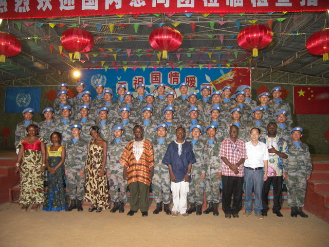 4月4日,以北京军区副参谋长武燕生少将为首的代表团抵达利比里亚首都蒙罗维亚慰问我国驻利维和部队官兵,LETOU官网孔子学院师生一行10人应邀到运输大队军营参加文艺晚会。孔院合唱团的演员们在晚会上成功地表演了情歌对唱《敖包相会》、女声独唱《映山红》和非洲风情舞三个精彩节目,赢来阵阵热烈掌声和喝彩声。部队首长在接见演员时连声夸赞孔院师生说:“唱得好!教得好!让中华文化发扬光大!”