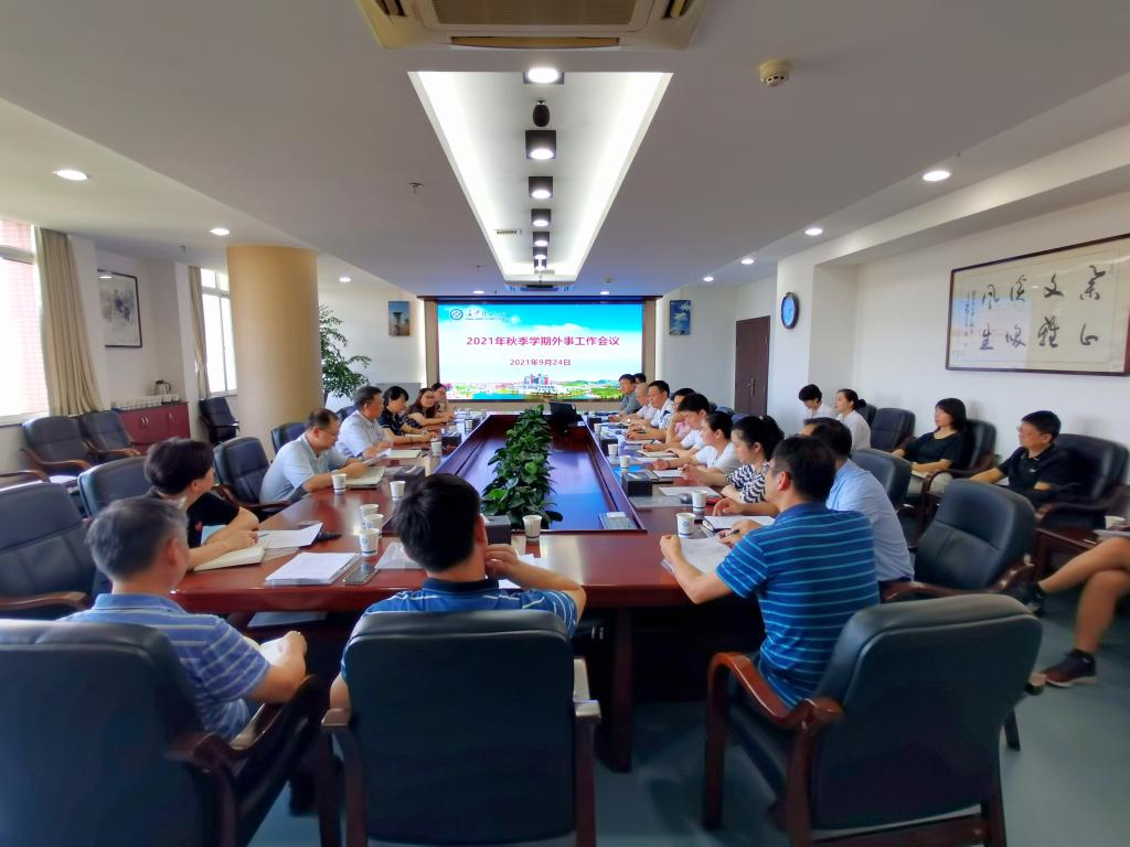 9月24日下午,学校在一办公楼五楼会议室召开2021年秋季学期外事工作会议,会议由副校长谈传生主持。各学院分管外事工作的负责人、国际交流处全体工作人员参加了会议。