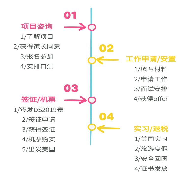 该项目起源于美国联邦政府与1948年通过的信息及教育交流法案,后在1961年纳入并扩展为教育及文化平等交流法案。项目致力于美国与其他国家的教育文化交流,让全世界大学生能花尽可能少的钱,拥有尽可能多自由体验美国生活。项目在进入中国之前,已在欧洲,美洲及亚洲其他国家和地区成功运作50 余年,每年有成千上万的大学生,在暑假,持J-1证进入美国企业进行为期为12-15周的短带薪期实习,并利用间歇期在美国境内旅游或实地体验美国生活。根据美国国务院及美领馆规定,中国学生参加项目时间为6月1日至9月15日。参加此项目的同学不但提升英语交流能力,开阔视野,同时也为未来职业打下坚实的基础。